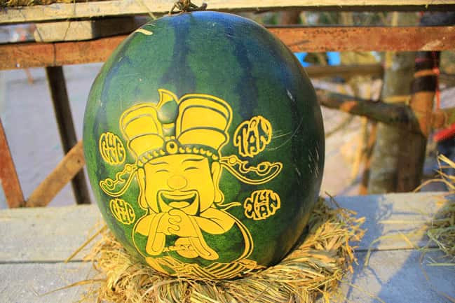 Khắc laser lên trái dưa hấu